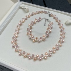 Elegance Outfit hecho a mano 925 broche de plata Cadena de extensión 3-5mm collar de perlas de agua dulce conjuntos de joyería de boda