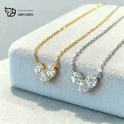Colgante de diamante de moissanita de plata 925 de gama alta de longitud ajustable, collar de clavícula de diamante completo en forma de corazón de tres piedras